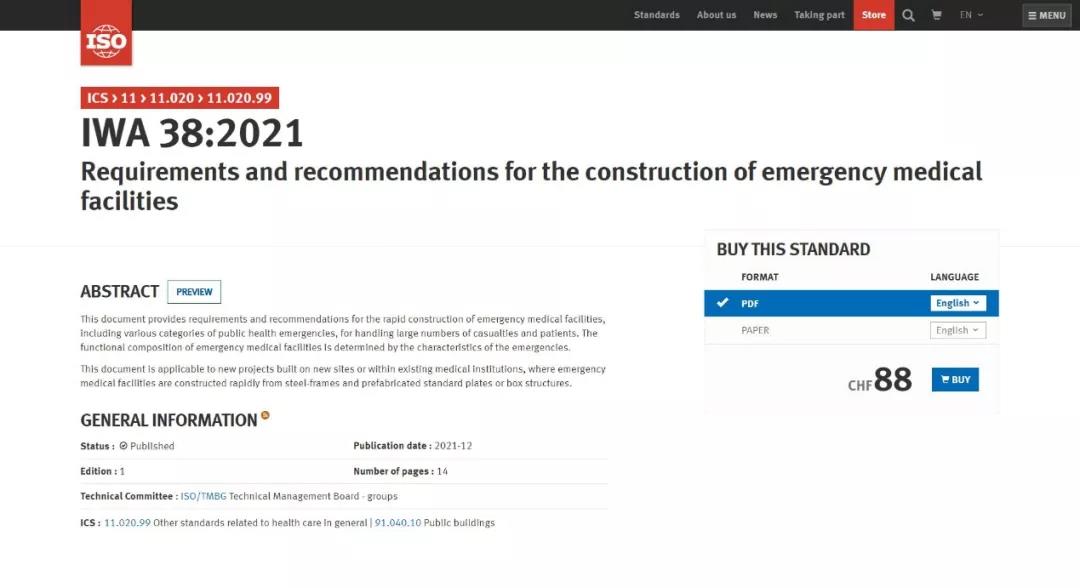 中国Uwin电竞,中国有限公司官网牵头提出的ISO/IWA 38《应急医疗设施建设导则》正式发布