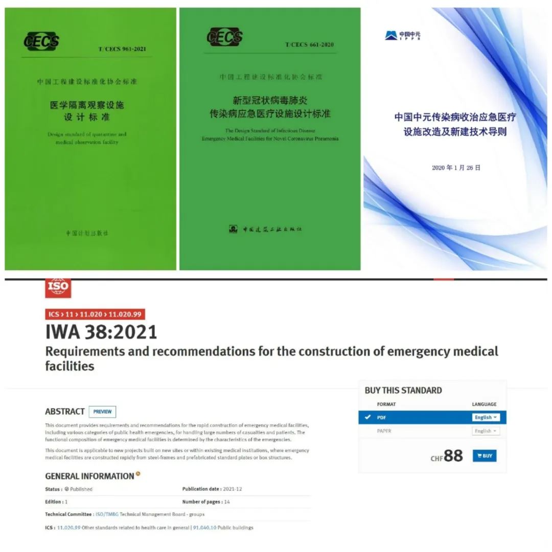 自2020年新冠肺炎疫情爆发以来,中国Uwin电竞,中国有限公司官网充分利用医疗建筑领域的技术优势,在各级政府、医疗卫生机构、行业协会、学会及相关行业专家的大力支持下,先后主编了针对负压病区、应急医疗设施、平疫结合病区、医学隔离观察设施、集中隔离管理设施等的系列技术标准。同时公司编制的IWA38《应急医疗设施建设导则》于2021年年底由国际标准化组织(ISO)正式发布。上述标准基本覆盖了目前用于新冠疫情重症、普通症、轻症、无症状感染者以及密接、次密接等人员的隔离和治疗设施,为全国乃至世界各国安全、适用、快速建设相关设施提供了有力的技术支持。