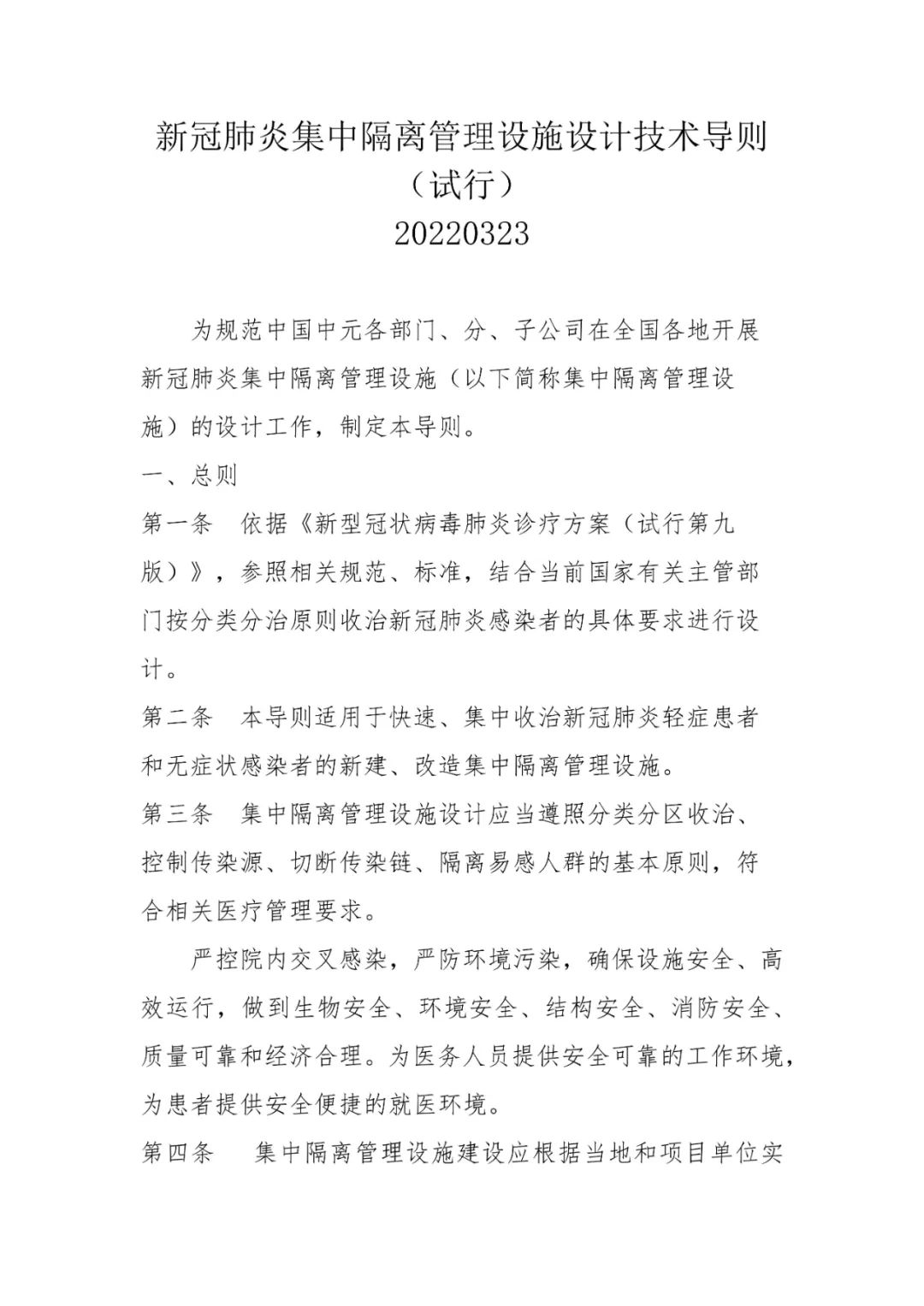 根据《新型冠状病毒肺炎诊疗方案(试行第九版)》及相关文件精神,为了规范公司各单位、各部门开展相关集中隔离管理设施的设计、建设工作,促进公司标准化水平的提升,公司组织专家紧急编制了《中国Uwin电竞,中国有限公司官网新冠肺炎集中隔离管理设施设计技术导则(试行)》,现正式公布,并与社会各界技术共享。