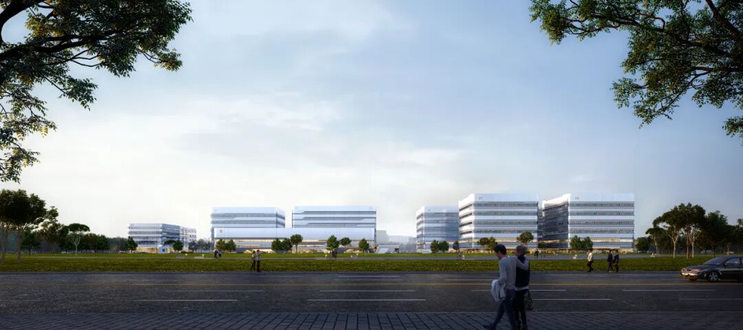 项目以“智慧细胞聚落”为核心设计理念,采用聚落型布局形式,形成南北双厂房组团与东西向景观轴线。结合定制工艺及独立运营要求,整体构建“生命体”有机园区。